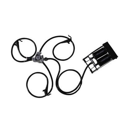 The UberTap features a 303 stainless steel keg coupler with a black lever-style handle and a tin-nickel plated probe. It includes a foot pump with a 4-ft. hose, three plastic faucets with squeeze triggers and a 2-ft. hose for each faucet.
